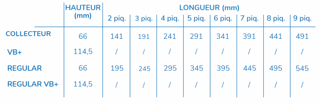 Le spécialiste de la plomberie Hors-Site Collecteurs & Modules Plomberie préfabriquée Collecteurs sanitaires Modules NeoFix Modules Chauffage Easy Zoom sur Les caractéristiques Composition Tube cuivre écroui traitement anticorrosionAvis CSTB 35432Changement de voie : 2% argent BFCapillaire : BT étain / argent / bronzeRaccords laiton série forte CSTBPlaque support PVC recyclé à 80% Spécificités 2 à 9 départsDiamètre 22mmCollecteur et module, seul et/ou avec option Regular et/ou Option VB+Alimentation 3/4, départ 1/2 MâleMâle/mâle + bouchon réversible à l’installationModule chauffage Easy : 2 purgeurs automatiques aller/retour intégrés. Avantages Vous souhaitez ajouter une finition supplémentaires à vos installations ? En savoir + Une question ? N’hésitez pas à nous contacter pour toute demande d’informations complémentaires, chiffrages pour votre projet.A très vite ! Veuillez activer JavaScript dans votre navigateur pour remplir ce formulaire.Veuillez activer JavaScript dans votre navigateur pour remplir ce formulaire.Nom *PrénomNomEntreprise * Commentaire Entreprise Nom E-mail *Commentaire ou messageEnvoyer
